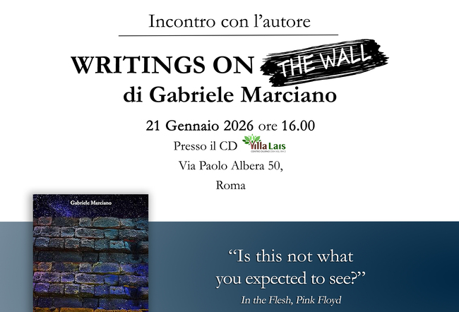 Il 21 gennaio 2026 alle ore 16 si terrà l’incontro con l’autore Gabriele Marciano, psicologo, psicoterapeuta e autore del libro “Writings on The Wall”: dalla simbologia del muro al percorso della band, fino al significato della musica. La storia del personaggio di Pink all’interno del progetto dei Pink Floyd.
