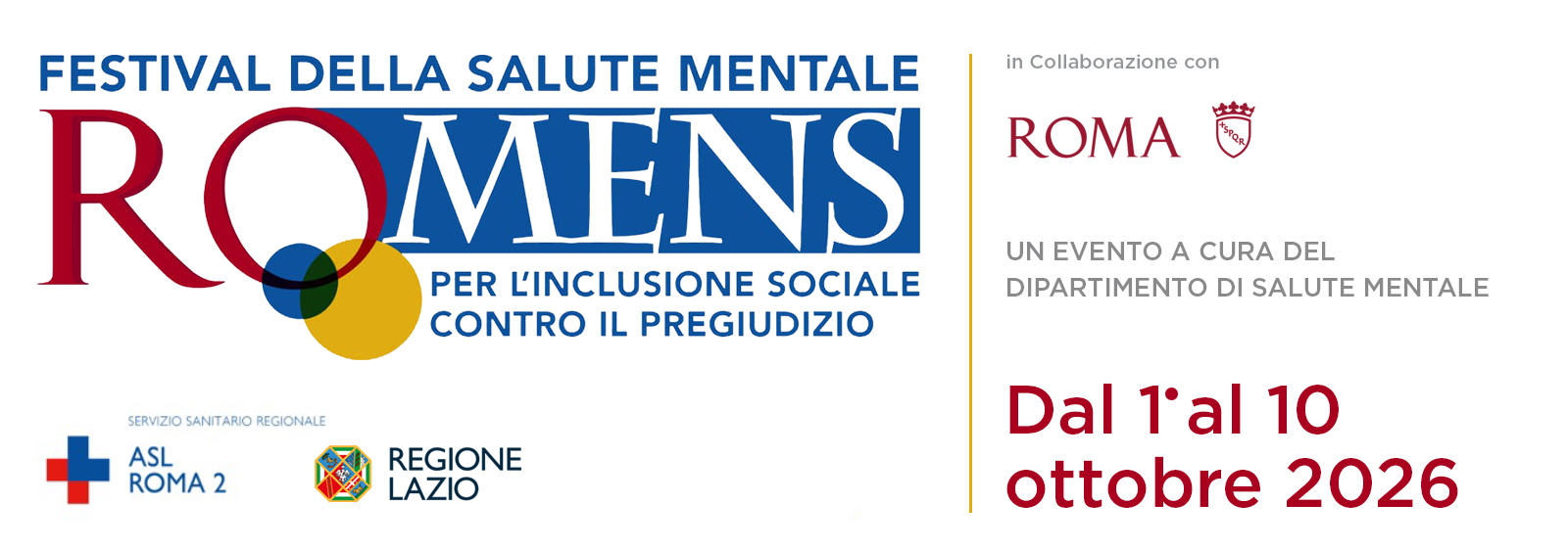 La V Edizione di RO.MENS è organizzata dal Dipartimento di Salute Mentale dell’ASL Roma 2 in collaborazione con l’Assessorato alle Politiche Sociali e alla Salute di Roma Capitale.